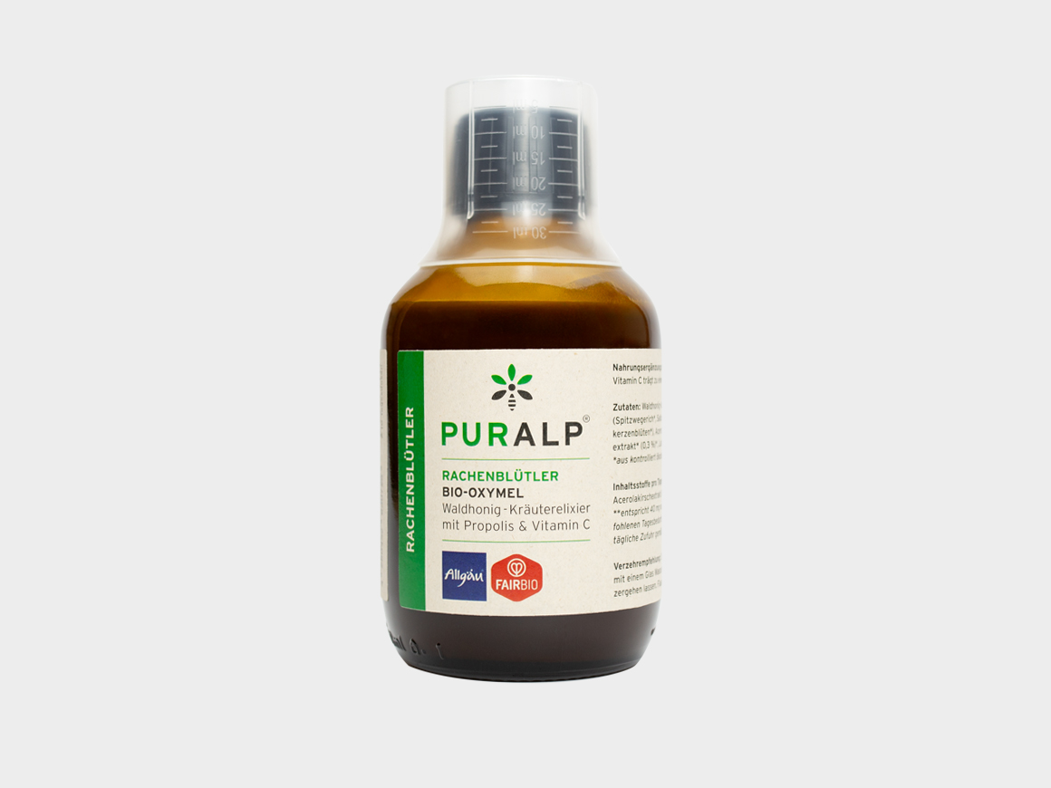 | Verzeichnis der Zutaten und die Menge bestimmter Zutaten oder Klassen von Zutaten | Waldhonig-Apfelessig-Kräuterauszug* (98,65 %) (Spitzwegerich*, Salbei*, Thymian*, Malvenblüten*, Königskerzenblüten*), Acerolakirschextrakt* (1,0 %), Propolisextrakt* (0,3 %)*, Latschenkieferöl* (0,05 %). |